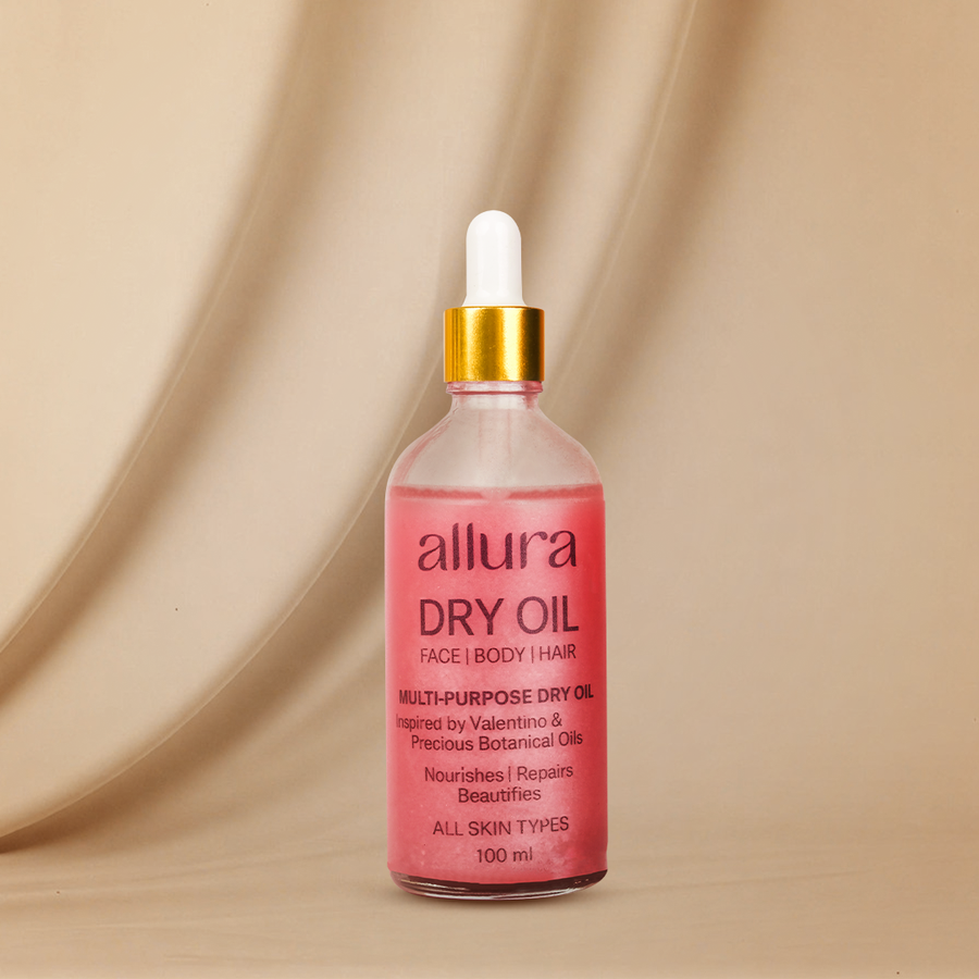Allura Dry Oil يرطب البشرة والشعر والجسم بعمق دون ترك أي ملمس دهني.