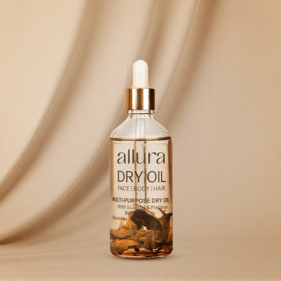 Allura Dry Oil يرطب البشرة والشعر والجسم بعمق دون ترك أي ملمس دهني.